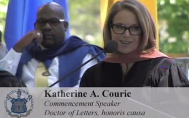 Of course, no Couric commencement address would be complete without a rehashing of her time at the anchor desk of the CBS Evening News. Same as her previous commencement addresses Couric lamented: