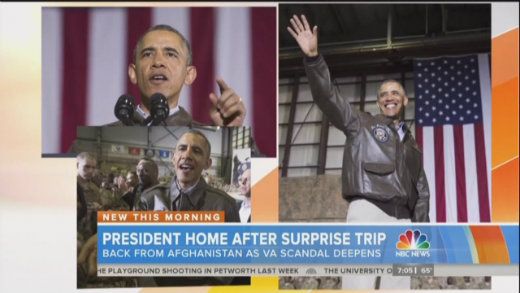 On Monday’s Memorial Day edition of the Today Show, White House correspondent Kristen Welker lamented that the President’s surprise visit was “overshadowed” by the “looming VA scandal.” over B-roll of the President thanking the troops.