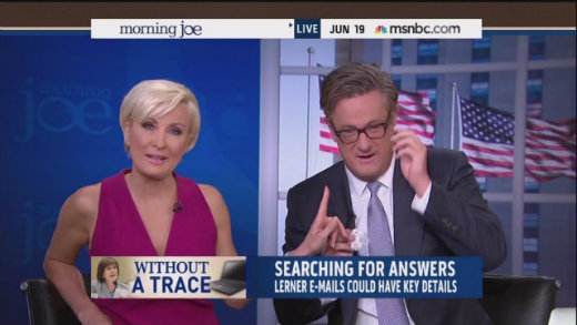 He mocked, “This is one of the most important people at the Internal Revenue Service so maybe these e-mails are of some worth." The segment came at the top of the 6 a.m. hour of the broadcast. Mika Brzezinski was attempting to read through the headlines for the show when Scarborough, unable to contain himself, went off on the latest excuses from the IRS and Lois Lerner.