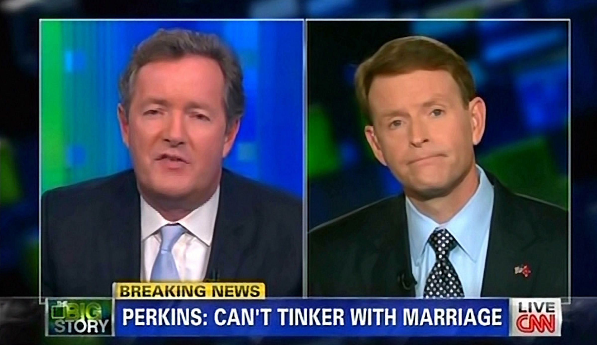 PERKINS: You know, Piers, I think that's a really good question and I think a lot of people will ask that question of themselves, because quite frankly, marriage from -- among heterosexuals has not been good, when we see a divorce rate around 50 percent. Of course my beginnings in public policy as an elected official was to do just that, to strengthen marriage, I authored the nation's first covenant marriage law. I've been working on marriage law for over 15 years. And the reason it's important, Piers, quite frankly is because public policy shapes the culture. And when we're talking about -- what we're talking about here is not shaping policy or creating policy based upon an individual here or an individual there, but what the social science tells us is best for society as a whole. And it's very clear that children --