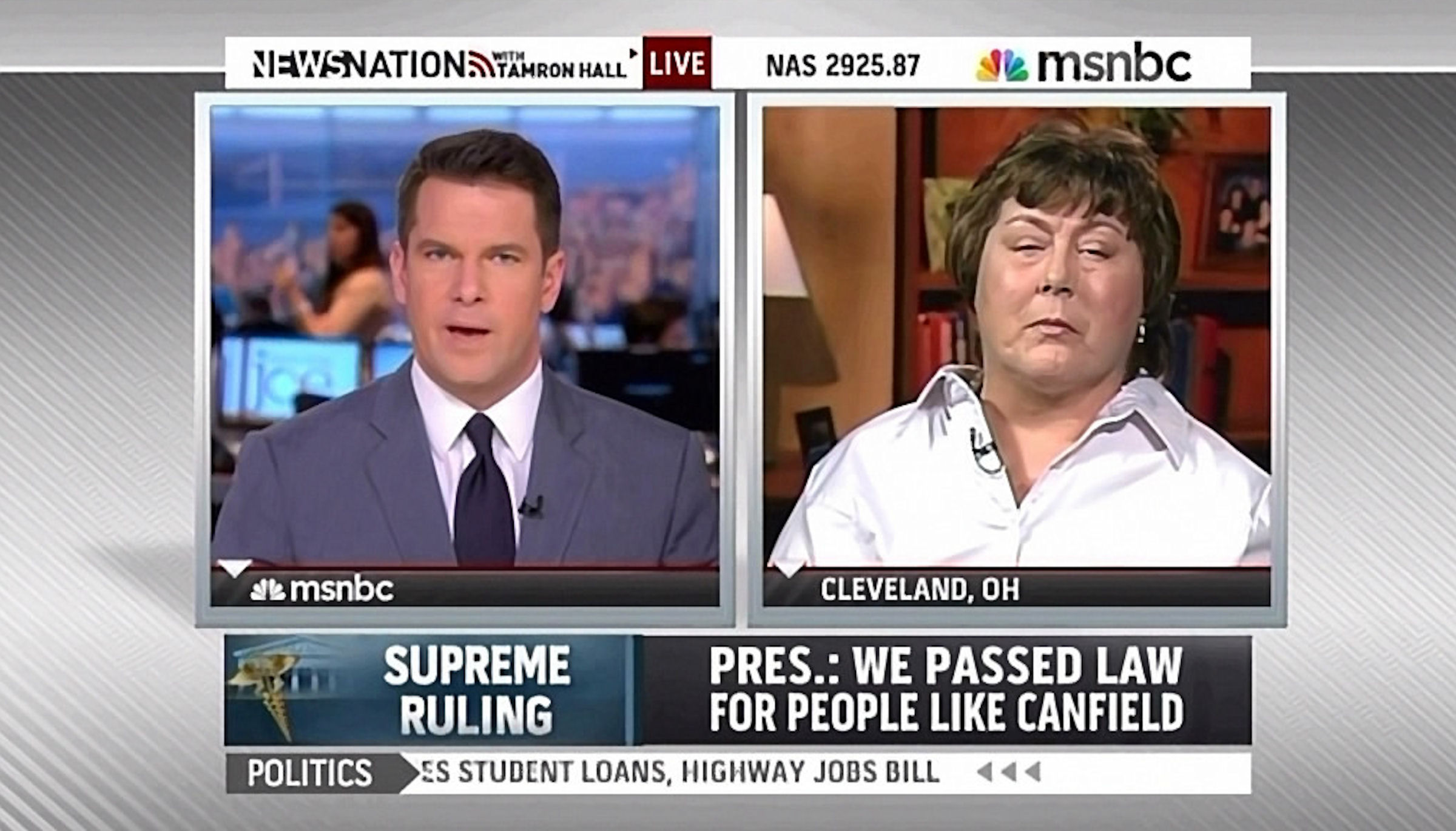THOMAS ROBERTS: President Obama there sharing the personal emotional story of a woman who benefited from his health care law. The president says he's carried Natoma Canfield’s story with him every day of this fight to pass the law and then yesterday the Ohio woman was solidified as a national symbol of this president's signature legislative achievement. Natoma Canfield joins me now to talk more about this. It's great to have you with us and we first heard your story when the president invited your sister to introduce him at a health care event two years ago. You were too ill to make it at that time. Let’s start out with update us all on your condition now. How are you doing?