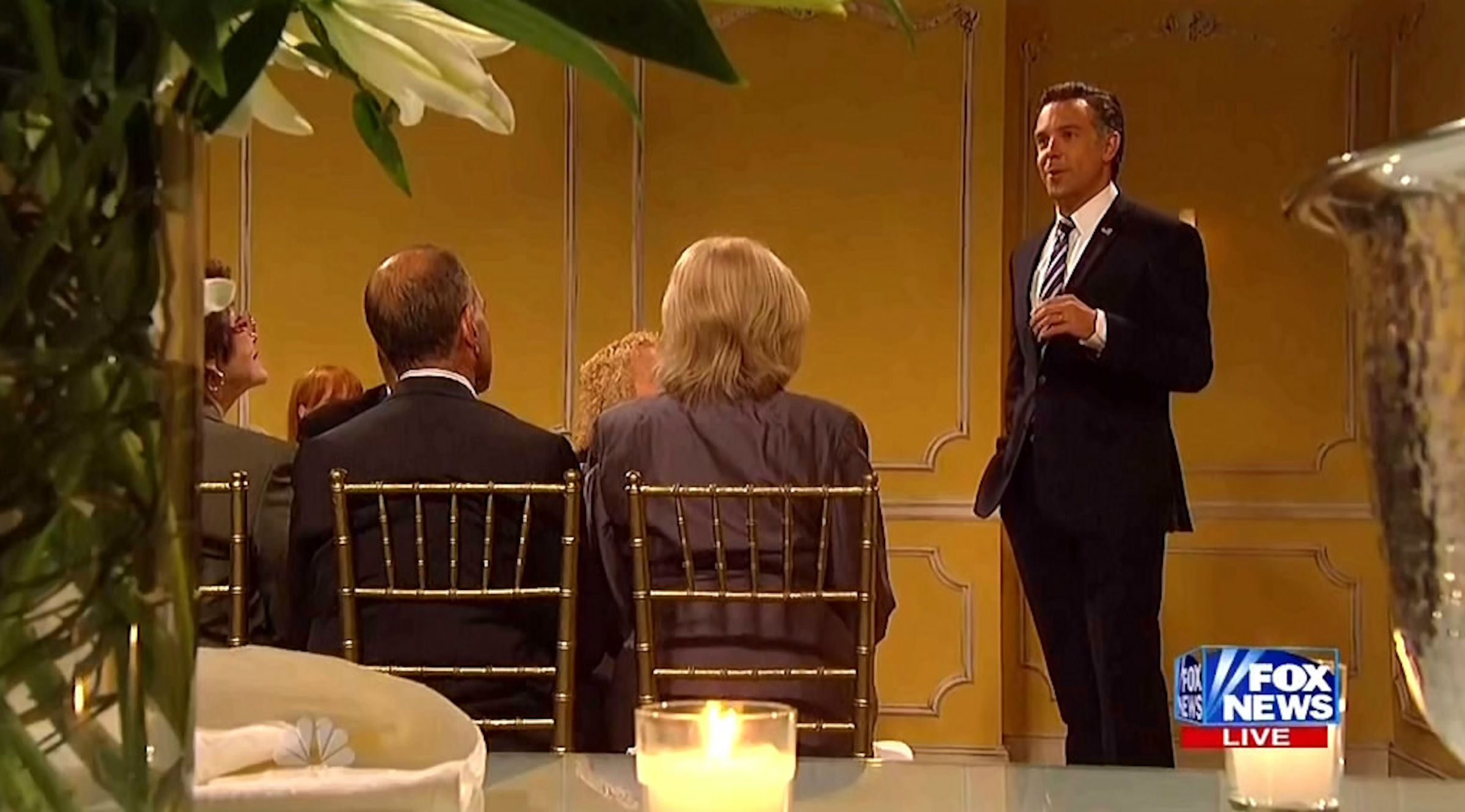 The show opened with a skit depicting the hosts of FNC's Fox and Friends and proceeded to show four fake scenes of Romney.