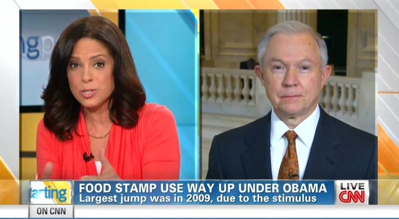 Appearing on Tuesday’s Starting Point, Senator Jeff Sessions (R-Ala.) was savaged by host Soledad O’Brien for daring to suggest the federal food stamp program should be one of the many programs that are trimmed in order to achieve spending cuts to avert the so-called fiscal cliff on January 1.