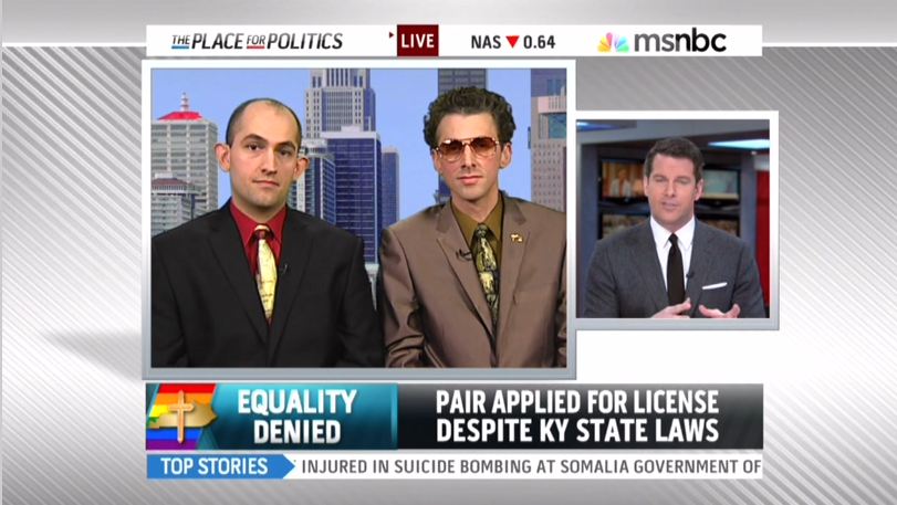 THOMAS ROBERTS: Well, a Kentucky pastor's fight for civil rights landed him in jail. The Reverend and his partner stood up for what they say is their right to marry. But when they tried to obtain a license from the county clerk's office, they were denied and instead they got arrested. Those two men join me now from Louisville, Kentucky. The Reverend Maurice Blanchard and his partner, Dominique James. Gentleman, it’s great to have you here. And as I want to point out to everybody, the state law says that any county clerk who knowingly issues a license and then violates the law would be guilty of a misdemeanor; they could face jail time in this and lose their job. But explain to us, reverend, I'll start with you, why did you feel it was important to go and try to get a marriage license?