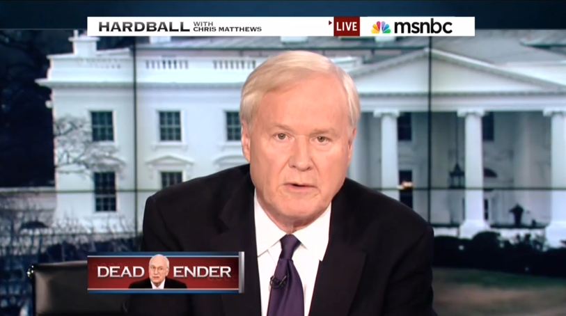 Matthews’ hatred towards Cheney didn’t stop there, with the Hardball host then calling Cheney’s actions as Vice President “criminal.” For their parts, Walsh and Fineman failed to push back on Matthews’ over-the-top rhetoric, and at times added their own vitriol, with Walsh claiming Dick Cheney has an “ugly legacy” and was the “source of evil from the White House from that administration.”