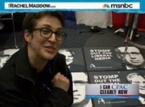With the annual Conservative Political Action Conference (CPAC) starting Thursday, March 14, Rachel Maddow, appearing on the Tonight Show w/ Jay Leno on March 11, recalled her pleasant encounter at the Media Research Center booth at CPAC in 2010.