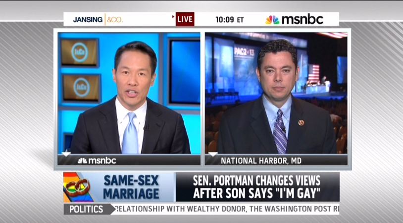 Lui’s question came following the Senator Rob Portman (R-Ohio) announcement that his son is gay and that he now supports same-sex marriage. Lui pushed the MSNBC gay marriage agenda by peppering Chaffetz with questions such as:
