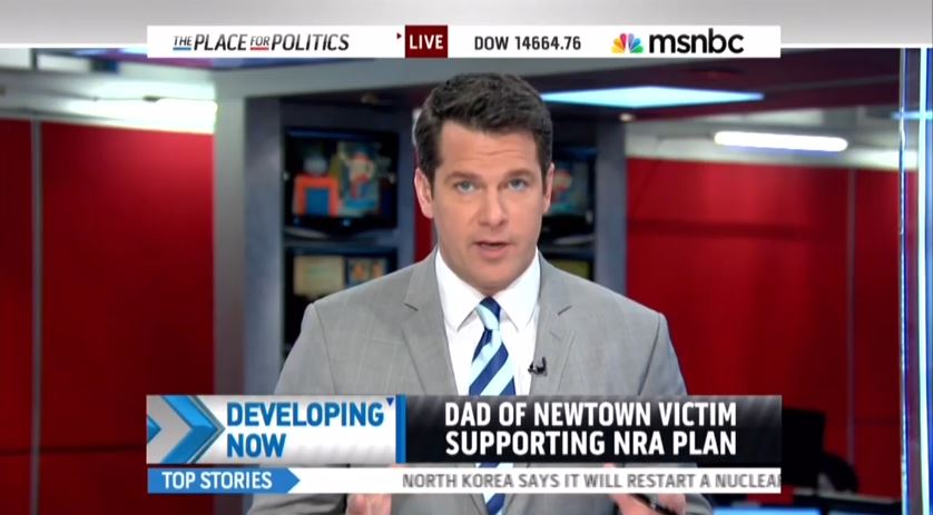 On his April 2 MSNBC Live program, Roberts actually played video of Mark Mattioli, whose son was murdered at Sandy Hook Elementary, speaking out in support of the National Rife Association's call for trained armed guards in schools across America. [See video after jump. MP3 audio here.]