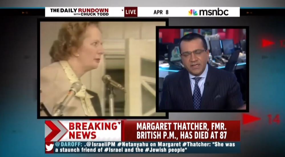 Leave it to MSNBC to bring its perhaps most vile ultra-liberal daytime host to make the first comments following the death of former British Prime Minister Margaret Thatcher. Speaking with host Chuck Todd and the BBC’s Katty Kay, Bashir sharply smeared the legacy of the Iron Lady, calling her tenure very divisive and one that promoted selfishness.