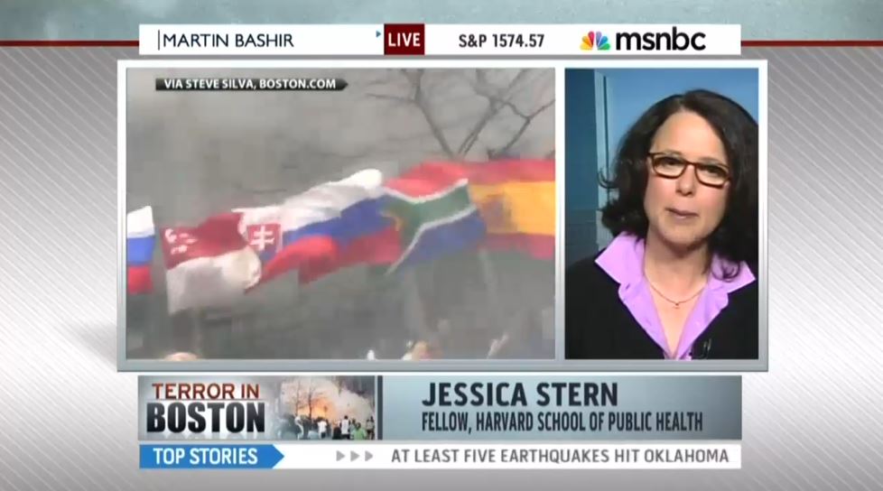 The media’s irresponsible speculation regarding the perpetrator of the terrorist attack in Boston seems to continue on MSNBC. Appearing on MSNBC’s Martin Bashir on April 16, fill-in host Thomas Roberts brought on Harvard’s Jessica Stern to make predictions about who might have initiated the terrorist attack on April 15.