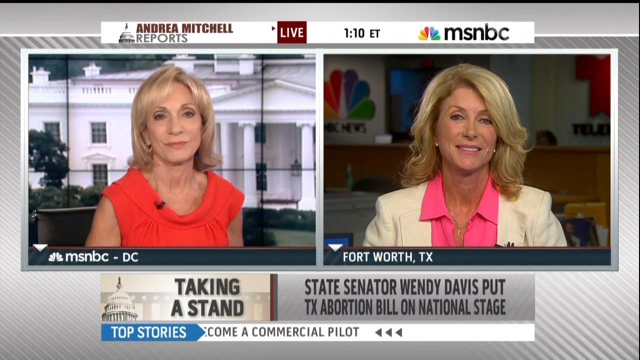 ANDREA MITCHELL: Good day. I'm Andrea Mitchell in Washington. Overriding shouts of protests from the gallery Texas statehouse Republicans rolled over the opposition today approving new abortion restrictions by a vote of 96-42. The bill now goes on to an almost certain passage in the senate.