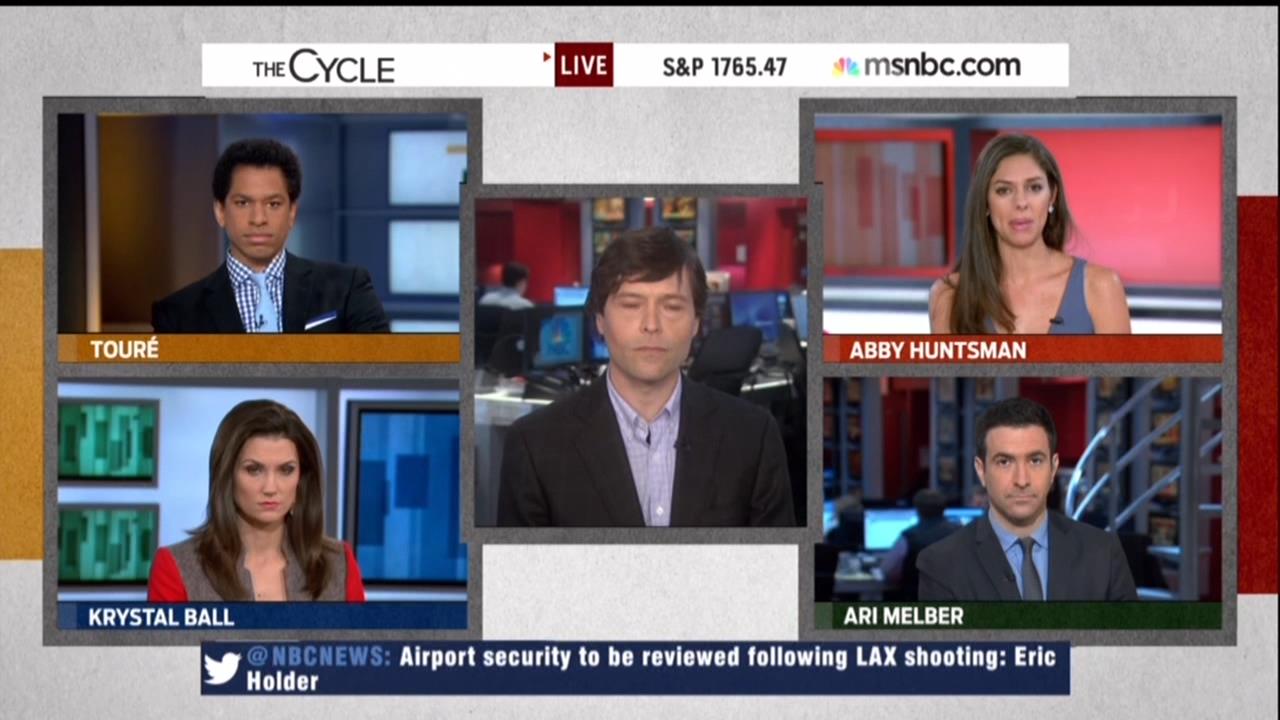 Leave it to the folks at MSNBC to take a tragic shooting as an opportunity to push a liberal agenda. On Monday November 4, the co-hosts of The Cycle brought on NBC terrorism analyst Evan Kohlmann to push the continual MSNBC theme that more armed security would have made the tragic situation which left one TSA agent dead much worse. On top of that, Kohlmann blamed a libertarian talk show host with inciting the shooting, although he produced absolutely no evidence to back up his claim.