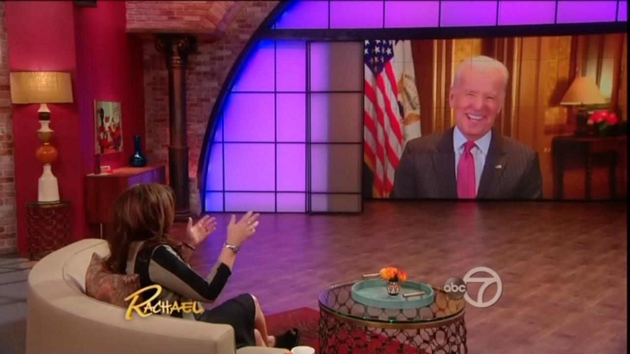 RACHAEL RAY: I’m so excited to start today's show, joining us live from the White House, we have a very special guest. Please welcome for the first time to our show, Vice President Joe Biden. Hi, Joe.
