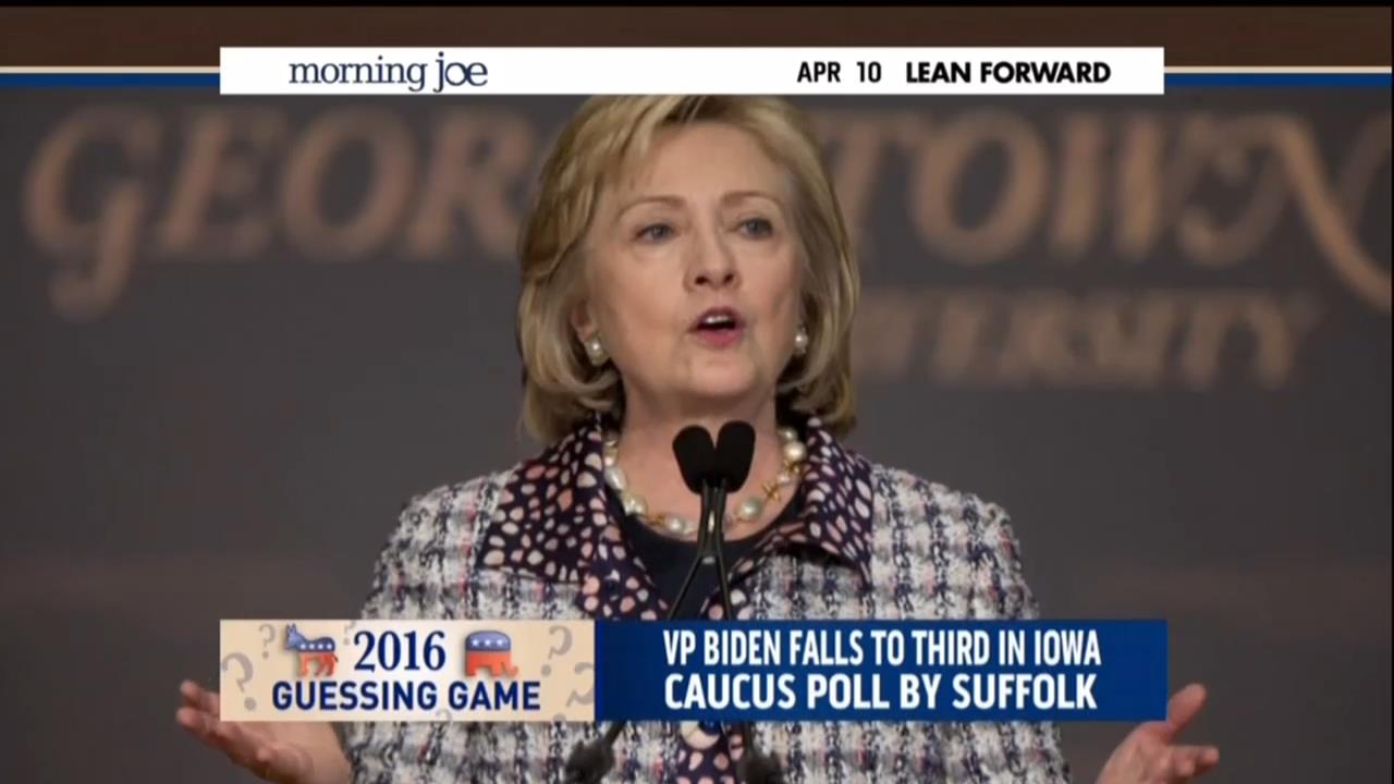 JOE SCARBOROUGH: There have been people in New York State that have also said that if Hillary doesn't run, then expect to see Kirsten Gillibrand run. But there are a lot of really good qualified candidates. I do think, though, Elizabeth Warren is going to have something in 2016 that both parties are going to be hungry for. And that is somebody outside the Washington establishment. She scares people in Washington. She scares people on Wall Street. And you get that candidate in the Democratic caucus in Iowa with a little bit of wind behind her, and --