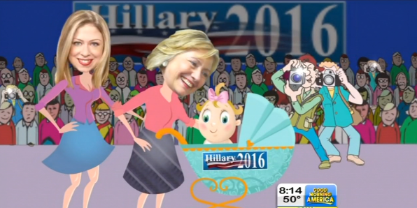 The segment began with GMA co-host Dan Harris proclaiming “Plenty of men have run for president while being grandfathers, and yet this weekend, the entire political world is abuzz with talk about what impact Chelsea Clinton's impending baby might have on the presidential campaign that her mom Hillary might launch run in 2016.
