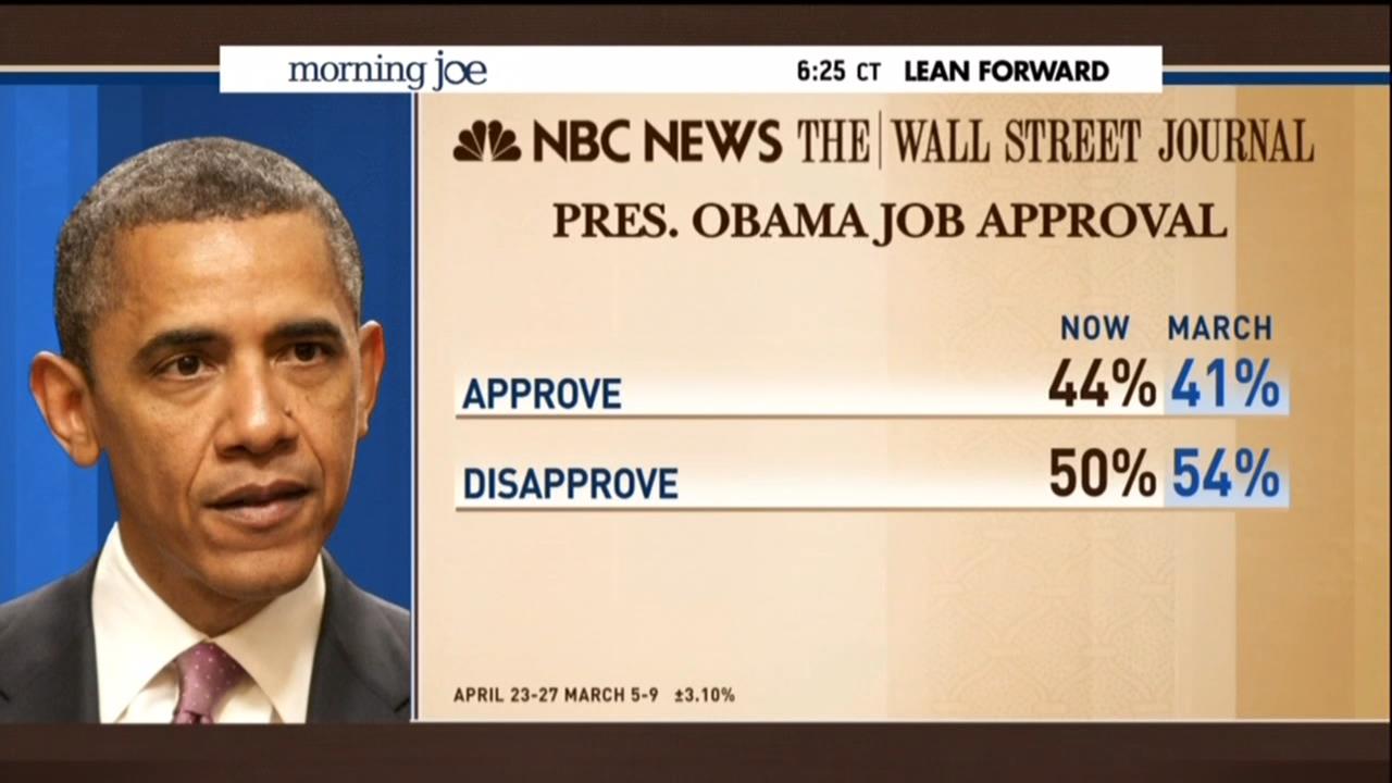 Appearing on MSNBC’s Morning Joe on Wednesday April 30, Chuck Todd tried to spin the latest NBC News/Wall Street Journal poll that shows half of Americans disapprove of Obama as “Improvement” for the Democrat.