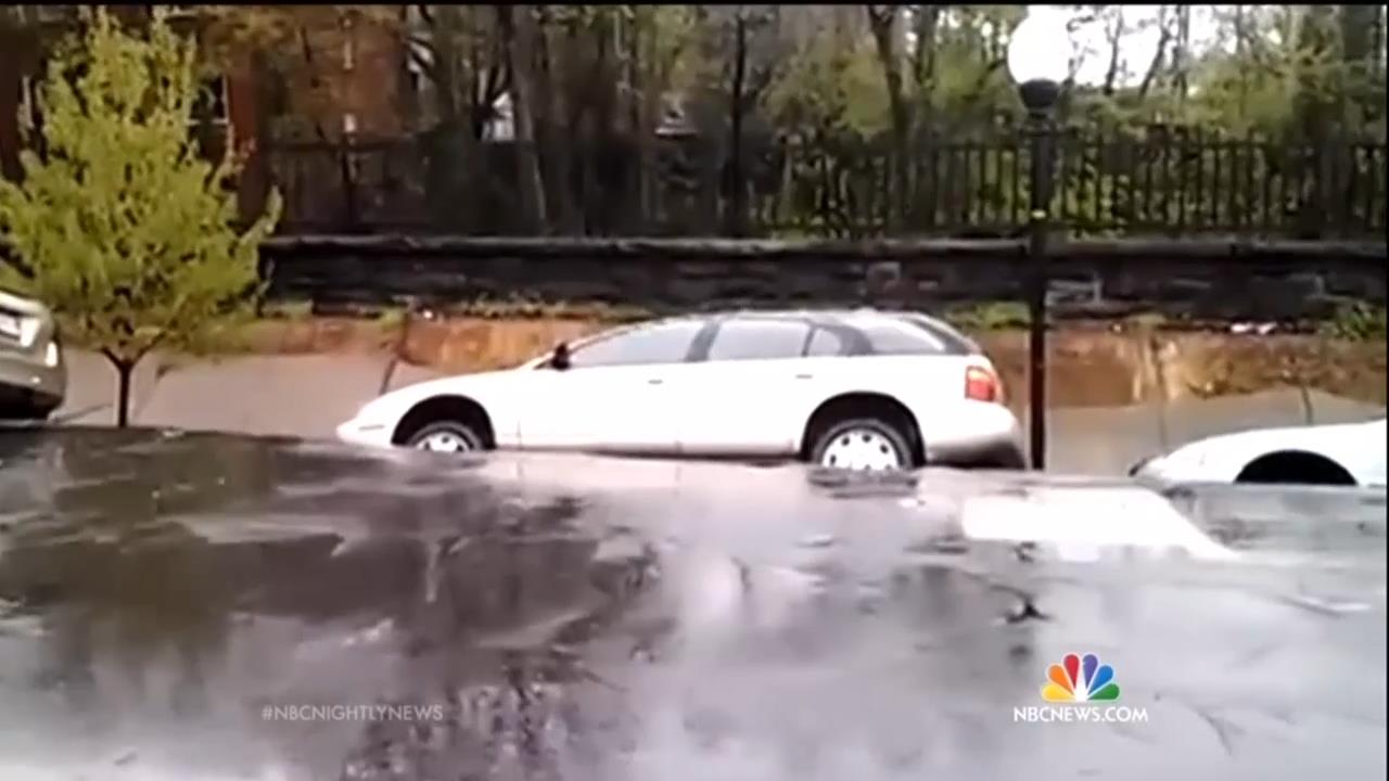 ANN CURRY: This scene, a street collapsing after a heavy downpour in Baltimore last week is one example of extreme weather events that may be more common in the future, according to a draft of the National Climate Assessment. The report by a 60-member committee, including the Defense Department, the American Cancer Society, and Chevron, in addition to climate scientists says the warming is primarily driven by human activity and predicts temperatures in the U.S. could soar by as much as 10 degrees by 2100. Snow and rain in the Northeast could increase by nearly a third. Hurricanes in the Southeast could be stronger, with some areas, quote, highly vulnerable to sea level rise. And wildfires in the Southwest like the one near Los Angeles on Thursday could increase, with more intense drought.