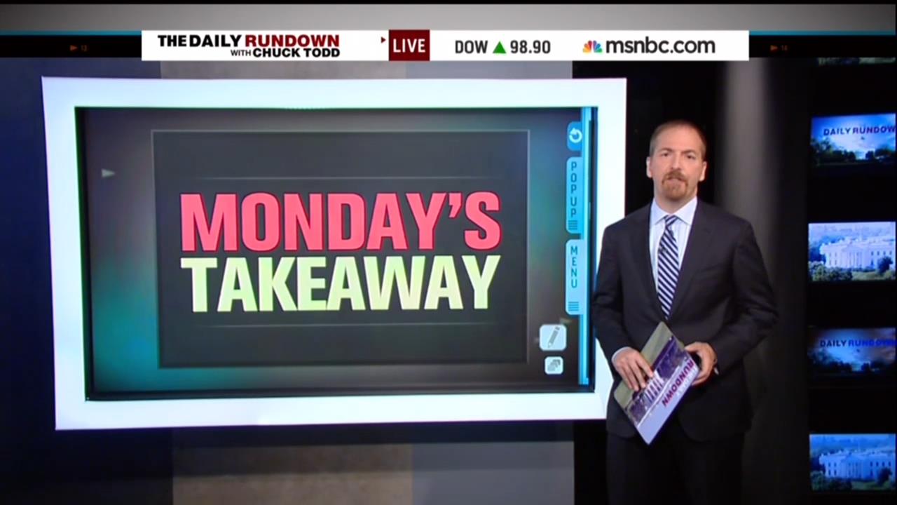 CHUCK TODD: It is “Takeaway Time”, and it’s an issue that we haven’t touched on the show yet, and it is the scandal that surrounds the VA. It’s growing. Two facilities now under investigation due to allegations that vets were ignored, mistreated, may have died while waiting for treatment. Now here’s what we know. Two whistle-blowers, alleged workers at the Phoenix VA Medical Center developed a secret waiting list to hide delays. And in Cheyenne, Wyoming an email written by a VA staffer appears to instruct other employees on how to adjust dates. Admitting the practice is quote gaming the system a little bit, unquote. So facing this increased pressure, Secretary Shinseki has ordered inspector generals to review the activities as Shinseki himself is scheduled to appear before the Senate Veterans Affairs Committee this Thursday. This is going to get probably a little ugly. On the Sunday shows, former and current Defense Secretaries Gates and Hagel defended Shinseki but said he must hold those responsible for their actions accountable. Meanwhile, more Republicans and Democrats are expressing concerns over Shinseki's leadership. And it’s this bipartisan outrage that’s the reason why this VA issue and scandal is a much story right now frankly than the investigation in Benghazi. It’s the outrage from both sides of the aisle coupled with the competency issue of the Obama administration that they were facing since the health care website debacle that could be actually a real political problem for this presidency and perhaps for Democrats moving forward. But this one has legs and it's very dangerous for the White House much more so frankly than the partisanized Benghazi.
