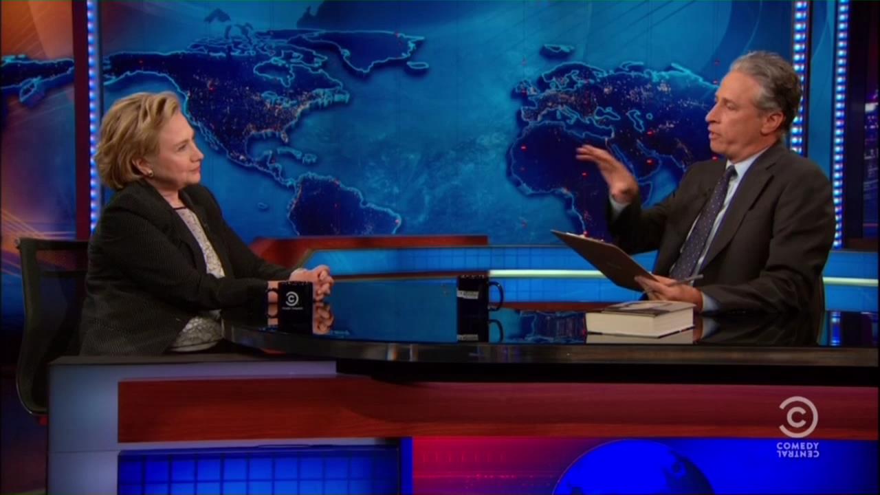 JON STEWART: Welcome back. My guest tonight, she was Secretary of State from 2009 until 2013. Her new memoir is called “Hard Choices." Please welcome back to the program Secretary Hillary Clinton. Secretary. Nice see you. I'm very excited. How are you?