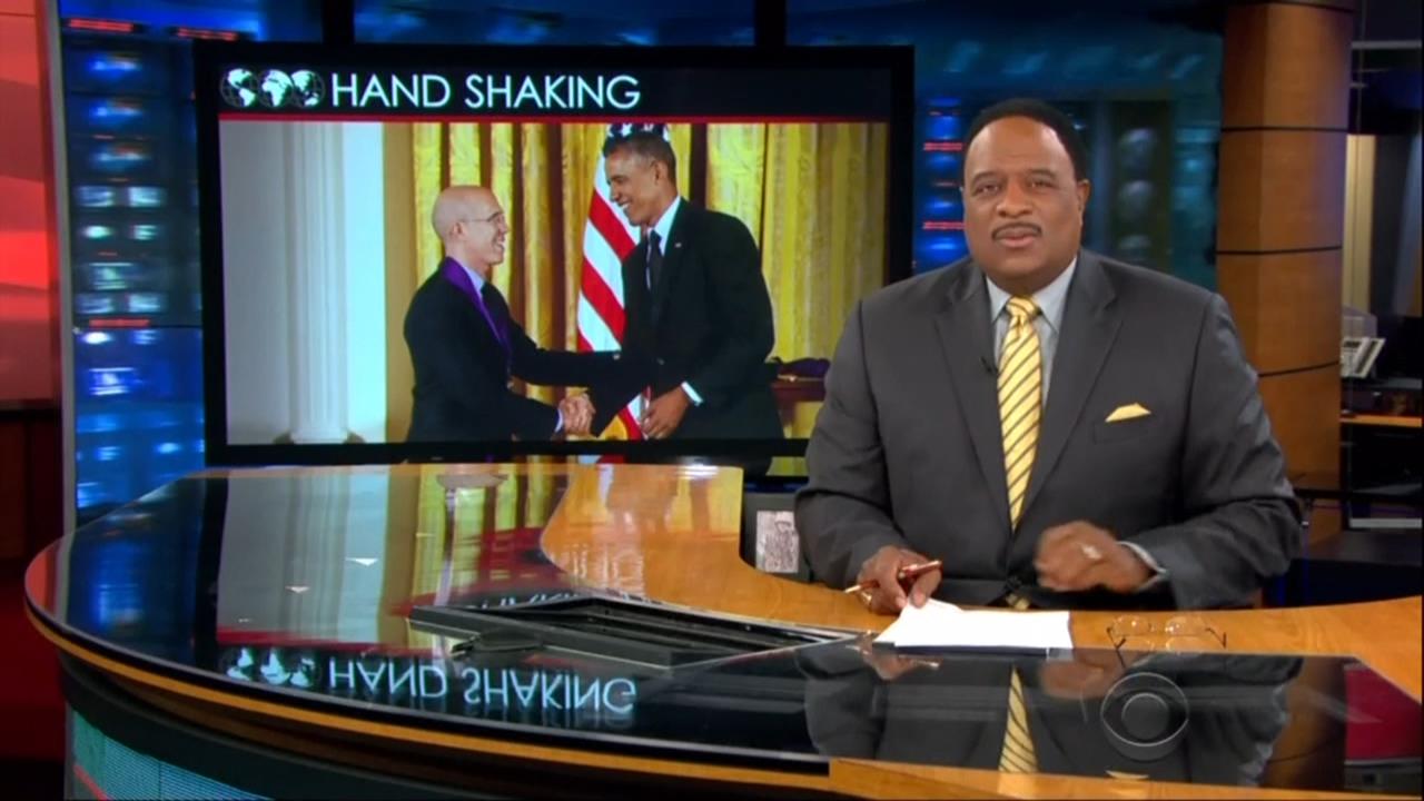 On Monday, July 28, the CBS Evening News with Scott Pelley used a new study showing that high fives are five times more hygienic than shaking hands as a way of promoting President Obama's use of the fist bump.