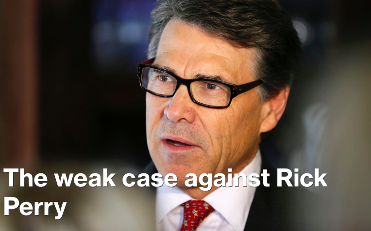 Kudos to Ari Melber for seeing past the partisan nature of his "Lean Forward" network and honestly recognize the lack of evidence against Governor Perry. We can only hope that Melber's MSNBC colleagues will follow in his footsteps and reject the Perry lawsuit as nothing more than a political attack against a potential 2016 presidential candidate.