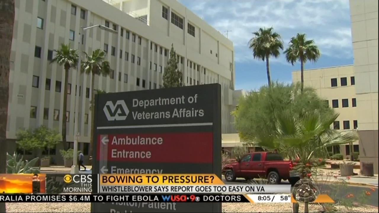 Our source who works at V.A. headquarters and who spoke exclusively to CBS News says officials inside the agency asked for a revision of the first draft. That's standard practice. But in this case, the source says it amounts to pressure on the Inspector General Richard Griffin to add that line to water down the report.