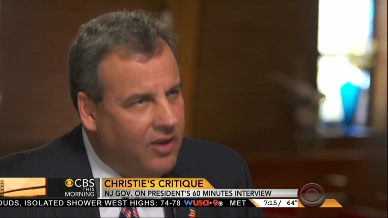 CHARLIE ROSE: The president's “60 Minutes” comments also drawing heat from Republican Governor Chris Christie sat down with Gayle and talked to the potential presidential candidate about this and other things. Good morning.