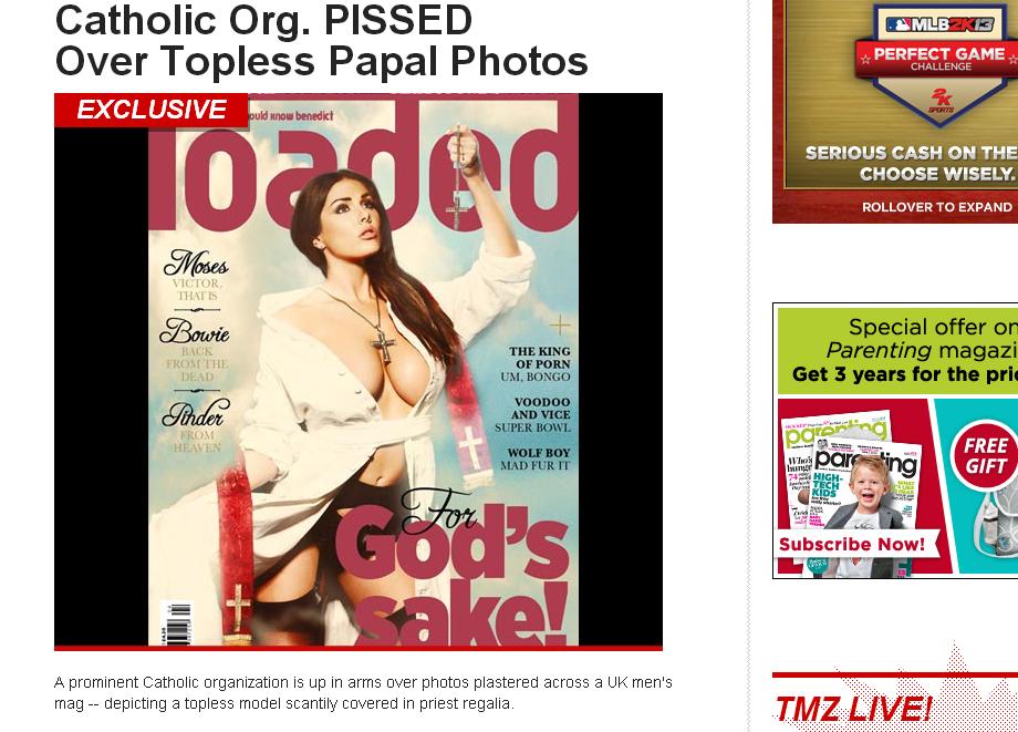 Paul Chaplin, Loaded’s owner, offered anything but an apology: "This is a photoshoot of a pretty girl (created so by god) which effects satirical commentary on that [papal] crisis.” He unabashedly blamed the Catholic Church for the picture, saying “The Holy See has held itself up to ridicule in the catholic and secular worlds by its historic and present conduct. Conduct which has led to the present papal crisis.”