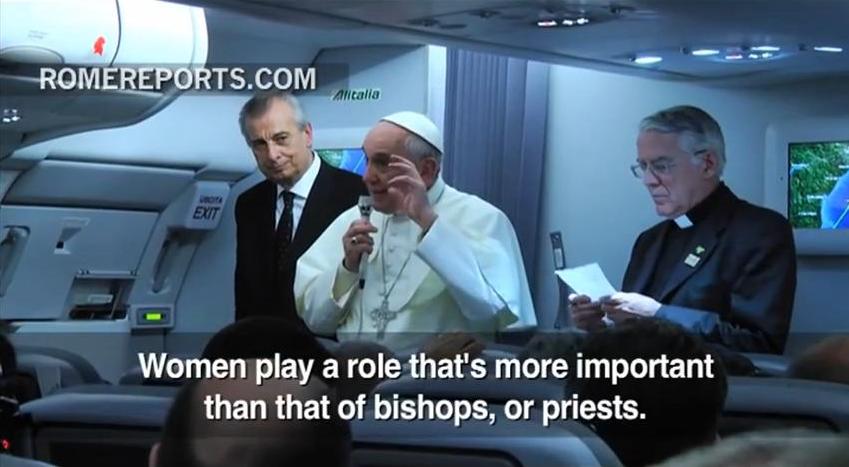 According to Rome Reports’ translation, Pope Francis told members of the press on Monday, July 29, “As far as the ordination of women, the Church has already spoken out and the answer is no,” and, “the door is closed.” He then emphasized the importance of women – a point the press appeared only too happy to censor, “But let me tell you something, Our Lady was more important than the apostles, bishops, deacons, and priests. Women play a role that’s more important than that of bishops, or priests.” Rome Reports, an “independent international TV news agency based in Rome, Italy, specializing in covering the Pope and the Vatican,” reaches an audience of over 1 billion.