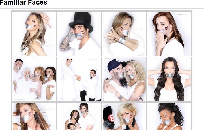 The NOH8 Campaign, a self-described “photographic silent protest,” consists of “subjects with duct tape over their mouths, symbolizing their voices being silenced by Prop 8 and similar legislation around the world, with ‘NOH8’ painted on one cheek in protest.” The project now boasts “nearly 33,000 faces,” many of whom are celebrities and politicians.
