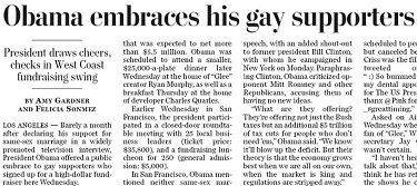 The question that the media and the gay community seem to be ignoring is, "why now?" Obama has been in office for more than three years, and until a month ago, remained silent on the issue. Suddenly during an election year, he has made up his mind, which has proved fortunate not only for his LGBT supporters, but for his bank account as well.