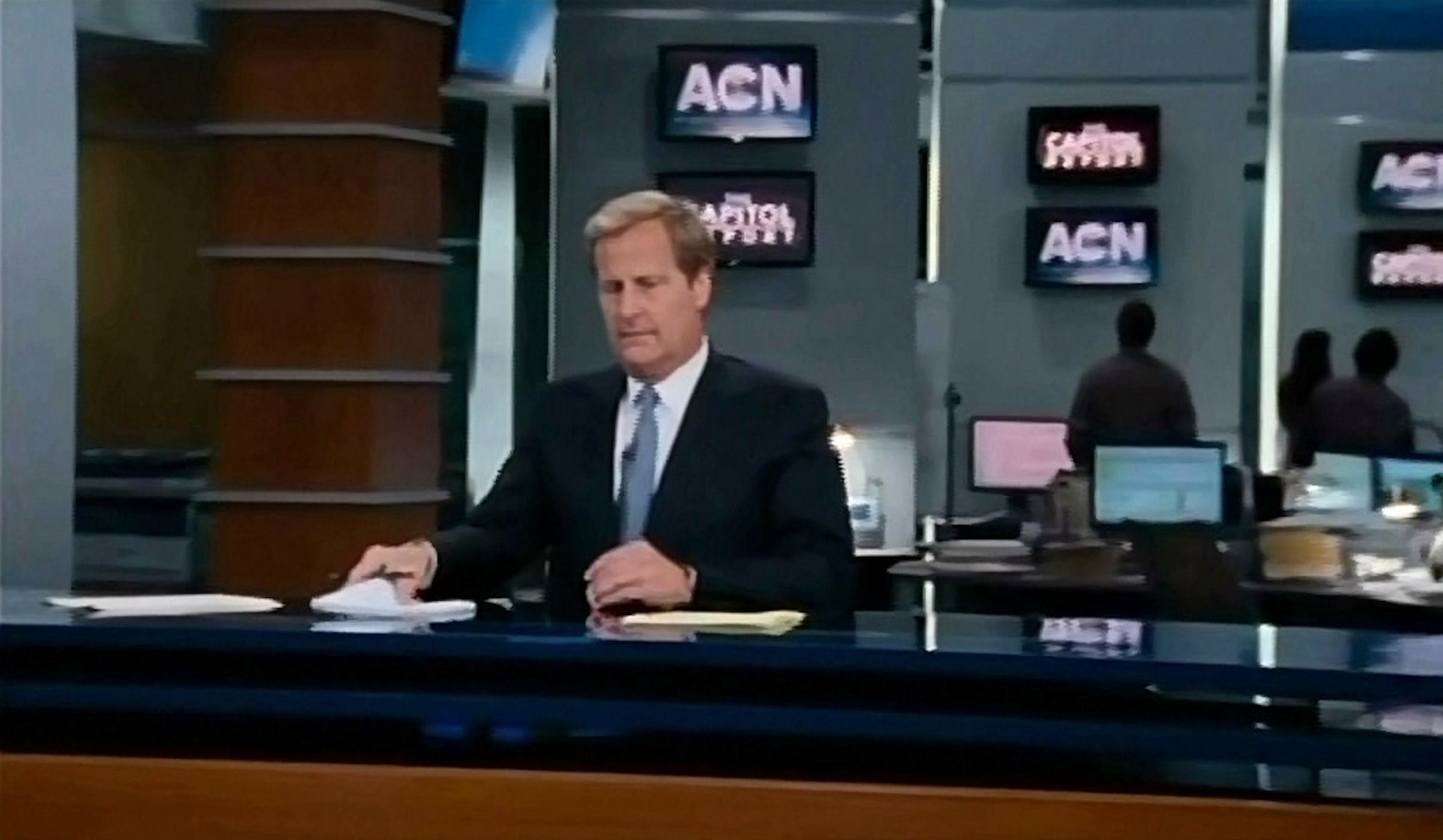 In the opening scene, new anchor Will MacAvoy (portrayed by actor Jeff Daniels) is asked by the moderator of a forum for journalism students at Northwestern about the reason that he does not expressly reveal his political leanings. When the moderator asks him if, “you feel the integrity of your broadcast would be compromised?” MacAvoy smugly says, “that sounds like a good answer, I’ll take it.” Seconds later, his tirade against America begins.
