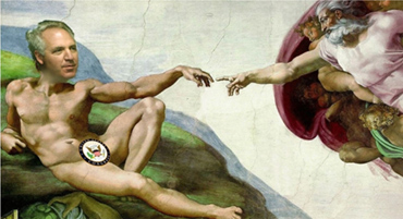 To accompany David Graham's November 23 The Gaggle blog post, Newsweek editors included a photo manipulation featuring the face of Rep. John Shimkus (R-Ill.) on the body of Adam in Michelangelo's "The Creation of Adam"