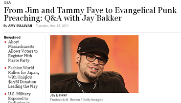 But with her March 15-published interview with Jay Bakker, a self-styled "evangelical punk preacher," Time religion writer Amy Sullivan failed to critically evaluate Bakker's claims or present challenges to Bakker's theology from within the mainstream of orthodox Christian thought.