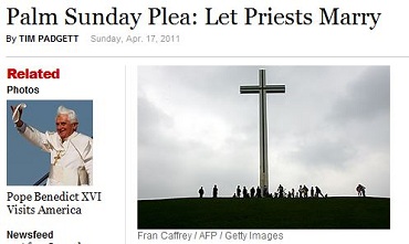 So it's no surprise that Time's Tim Padgett used yesterday, Palm Sunday, to write his "Palm Sunday Plea: Let Priests Marry":