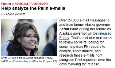 Both the Washington Post and the New York Times are looking for readers to help them comb through every jot and tittle of Sarah Palin's official gubernnatorial e-mail correspondence.