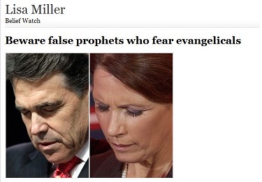 Washington Post religion writer Lisa Miller -- no stranger to criticism from NewsBusters -- took to the "On Faith" blog yesterday to tell readers to "Beware false prophets who fear evangelicals."