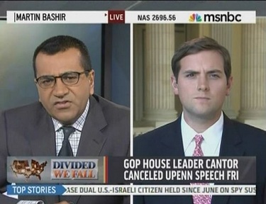 "This week, Eric Cantor will introduce a jobs bill of his own, so what exactly should we expect?" Bashir rhetorically asked viewers as he introduced his "Divided We Fall" segment, featuring MSNBC congressional correspondent Luke Russert live via satellite from the U.S. Capitol.