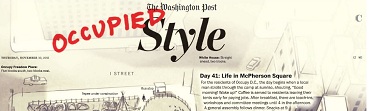 "A Square Gets Hip: In Gen. McPherson's park, the Occupy D.C. encampment improvises a vibrant urbanism," reads the headline on the front page of today's Style section. In a cutesy tip-of-the-hat to the Occupiers, the Style section's header is emblazoned with a red-lettered "OCCUPIED" tag to render today's section as "Occupied Style."