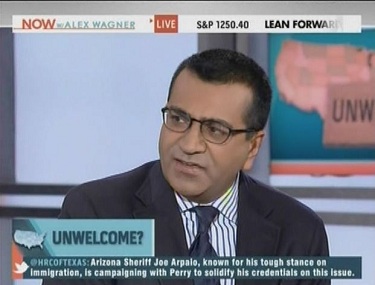 To Alex Wagner, "the rhetoric around immigration in this country is as strident and as divisive as it has [ever] been." But immediately after saying that on the December 2 edition of Now with Alex Wagner, the MSNBC host's British-born colleague Martin Bashir went off the deep end, lumping Rick Perry and Herman Cain in with German neo-Nazis suspected in a string of immigrant murders (MP3 audio here; video update to be posted later):