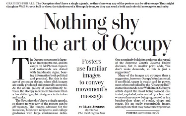Washington Post Style section editors gave freelance writer Mark Jenkins space for a 9-paragraph, 9-illustration feature item today entitled "Nothing shy in the art of Occupy."