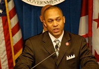 The news of Harry Thomas Junior's resignation made the front page of today's Washington Post, which promptly noted the disgraced councilman's Democratic Party affiliation. Thomas's party affiliation, however, was ignored by the websites for WJLA and WRC, the ABC and NBC affiliates. WUSA, the CBS affiliate, mentioned deep in its coverage that Thomas "agreed to resign from the seat once held by his father representing residents of the heavy democratic voting Ward 5."