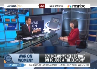 Republican senator and 2008 GOP presidential nominee John McCain's passing concession yesterday to Meet the Press host David Gregory that there is in fact a "war on women among Republicans" was the perfect springboard for MSNBC's Richard Lui to conduct a softball interview with former Planned Parenthood president Gloria Feldt. Lui, substitute hosting the March 19 edition of Chris Jansing Reports, introduced the segment with the relevant clip of McCain, noting that the feminist author had gone "toe-to-toe" with McCain on social issues and that "this was a change."