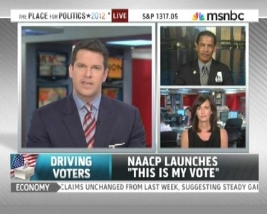 During the 11 a.m. Eastern hour of MSNBC programming, host Thomas Roberts matter-of-factly labeled voter ID laws as "voter suppression laws" that "could keep minorities and young people away from the polls" as he introduced his guests Heather Smith of Rock the Vote and the NAACP's Marvin Randolph.