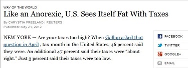 Like anorexics, who think they are grossly fat when they are very thin, the American body politic is suffering from a national version of body dysmorphia, with nearly half the country believing taxes are high, when they are comparatively and historically low.