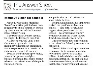 The Washington Post's Valerie Strauss -- who sends her daughters to private schools -- lashed out recently in her The Answer Sheet blog against Mitt Romney's ideas for education reform, in which school vouchers are a central piece.