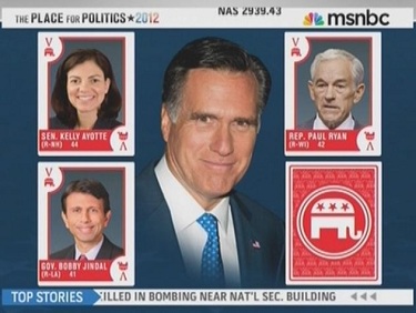 On today's edition of MSNBC Live, anchor Thomas Roberts talked with Michael Barbaro of the New York Times discussing the so-called Young Guns who are on the short list to be Mitt Romney's running mate: Sen. Kelly Ayotte (N.H.), Rep. Paul Ryan (Wis.), Gov. Bobby Jindal (La.), and Sen. Marco Rubio (Fla.).