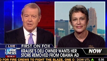 Krause-McDonnell (pronounced KROW-sea) appeared on today's Your World with Neil Cavuto, where she told substitute host Stuart Varney that her manager did not assent to, nor was she aware of the fact that a video production company could sell the footage to political campaigns. She also told Varney that after the ad ran, many customers reacted negatively and that she simply requested the campaign "haze out" the lettering in the frames that identified the deli as Krause's.