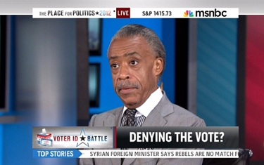On the August 17 MSNBC Live program, news anchor Thomas Roberts interviewed his fellow MSNBC colleague Al Sharpton, who openly and shamelessly continues to work as an activist on issues that his program reports on. Roberts failed to ask tough questions of Sharpton, nor did he bring on a defender of voter ID laws. What's more, although Sharpton is portraying the voter ID issue as one with strong racial dimensions, Roberts failed to note a recent poll that shows nearly 2/3rds of non-white voters support photo ID requirements to vote.