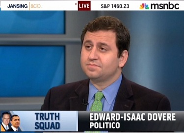 Updated at bottom of post | Politico's Edward-Isaac Dovere might want to brush up on federal firearms law before he holds forth on "fact-checking" statements about the issue. During a "Truth Squad" segment reacting to Tuesday night's debate on the October 17 Jansing & Co., the Politico deputy White House editor told MSNBC anchor Chris Jansing that Romney "is not correct as the [federal] law currently stands" regarding automatic weapons. Romney told the debate audience last night that "we of course don't want to have automatic weapons, and that's already illegal in this country [for civilians] to have automatic weapons."